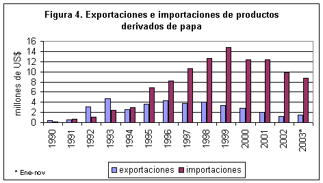 Tabla 1. Exportaciones e importaciones de productos derivados de papa