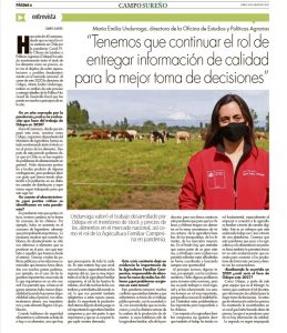 • La directora de Odepa, María Emilia Undurraga, concedió una entrevista a Campo Sureño, aquí la reproducción completa