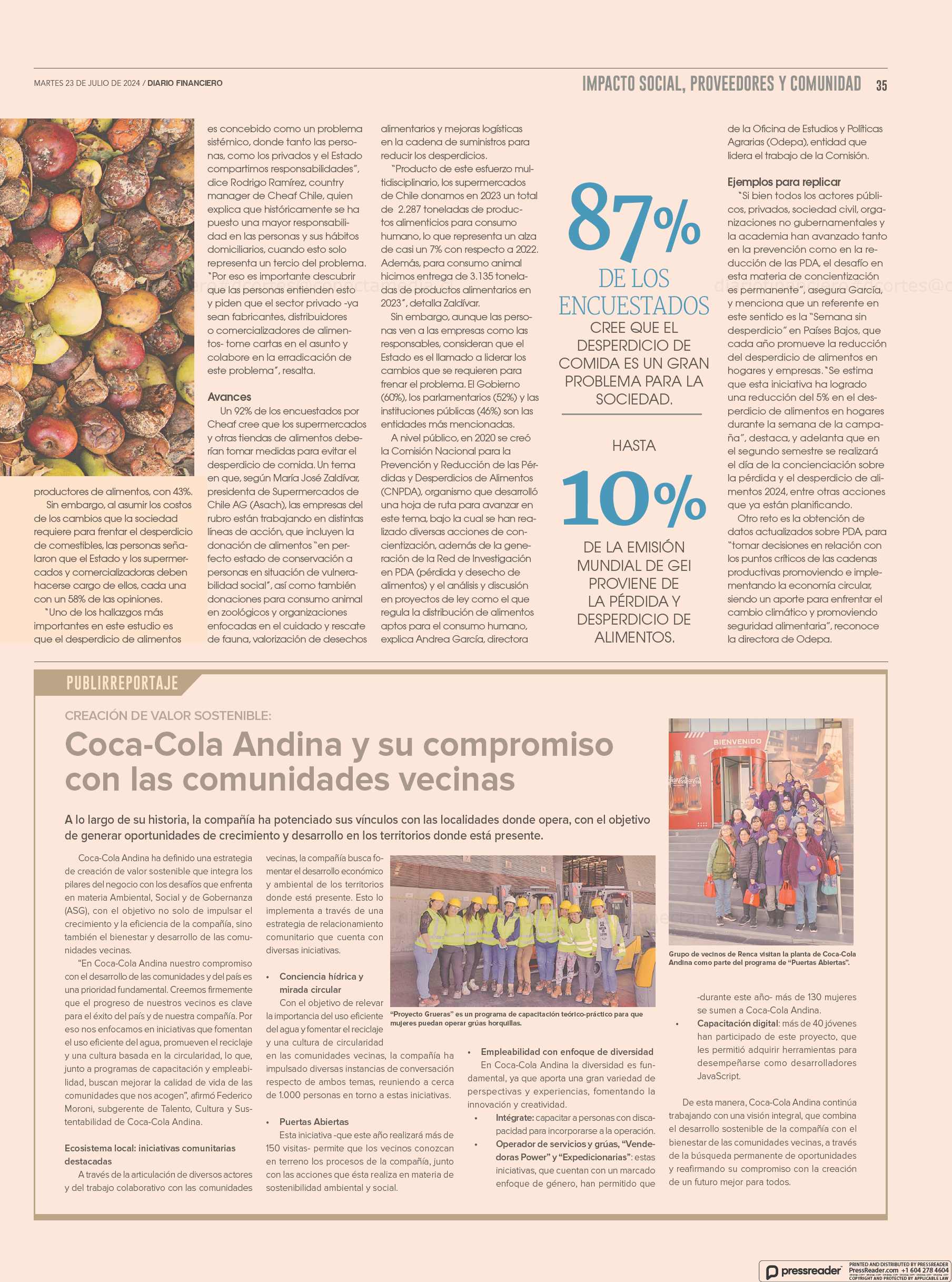 En medio de la divulgación de estudios sobre Pérdidas y Desperdicios de Alimentos en Chile, Diario Financiero publicó un reportaje que analiza la situación a nivel país sobre este tema. En este contexto, Andrea García, Directora Nacional de la Oficina de Estudios y Políticas Agrarias (Odepa), participó de esta nota para comentar las medidas que toma el Estado para mitigar la situación, como la creación de la Comisión Nacional para la Prevención y Reducción de las Pérdidas y Despedicios de Alimentos (CNPDA), la cual encabeza Odepa y que dentro de sus medidas se encuentra una hoja de ruta para avanzar en soluciones, análisis y discusión en proyectos de ley y más.