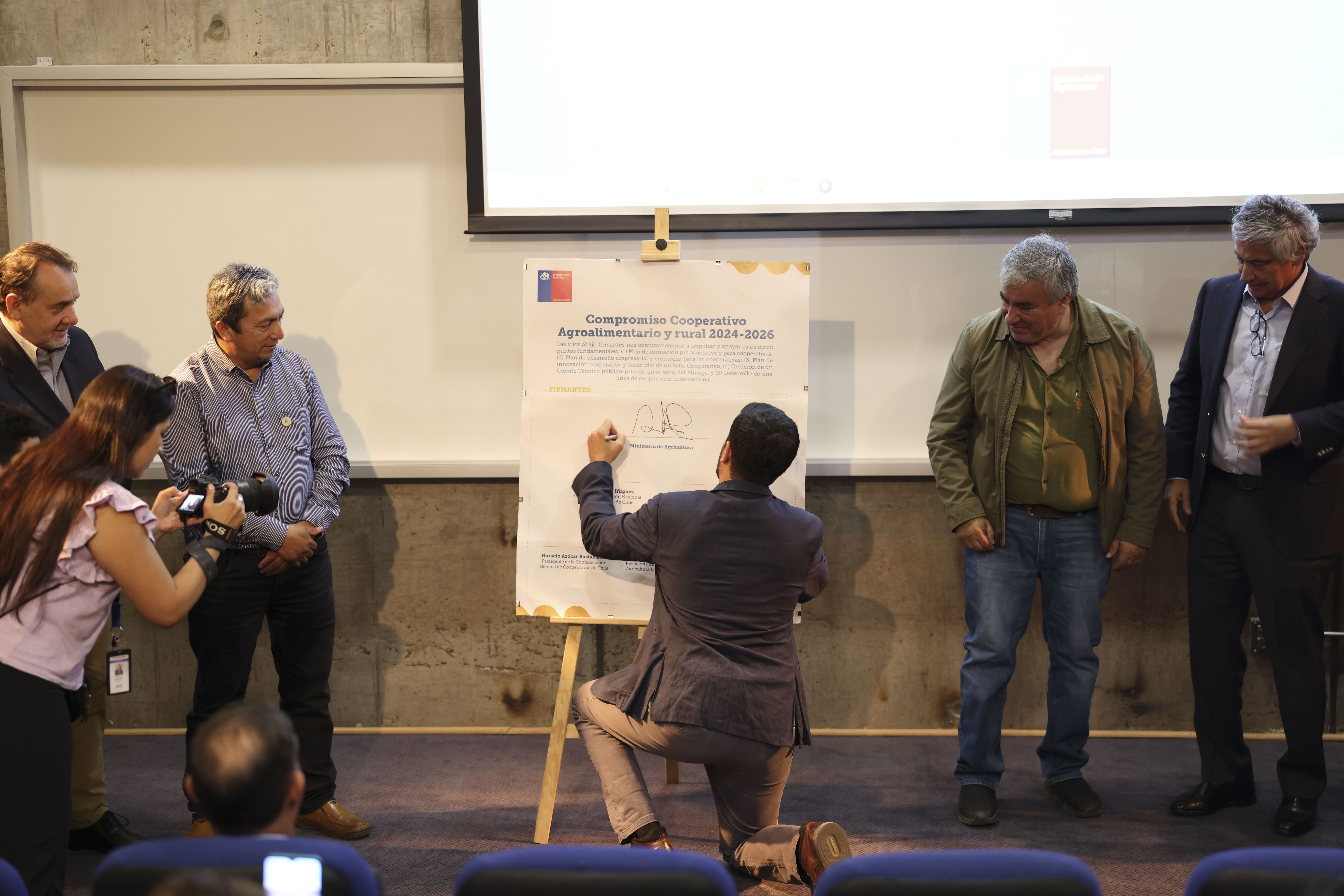 Uno de los puntos relevantes dentro del lanzamiento es la firma de un compromiso con el ministro de Agricultura Esteban Valenzuela y las organizaciones cooperativas con el fin de acordar el desarrollo de las acciones comprometidas dentro del Plan. Ellas son: Plan de formación pre asociativo y para cooperativas; (2) Plan de desarrollo empresarial y comercial para las cooperativas; (3) Plan de innovación cooperativo y desarrollo de un Sello Cooperativo, (4) Creación de un Comité Técnico público-privado en el seno del Minagri y (5) Desarrollo de una línea de cooperación internacional.