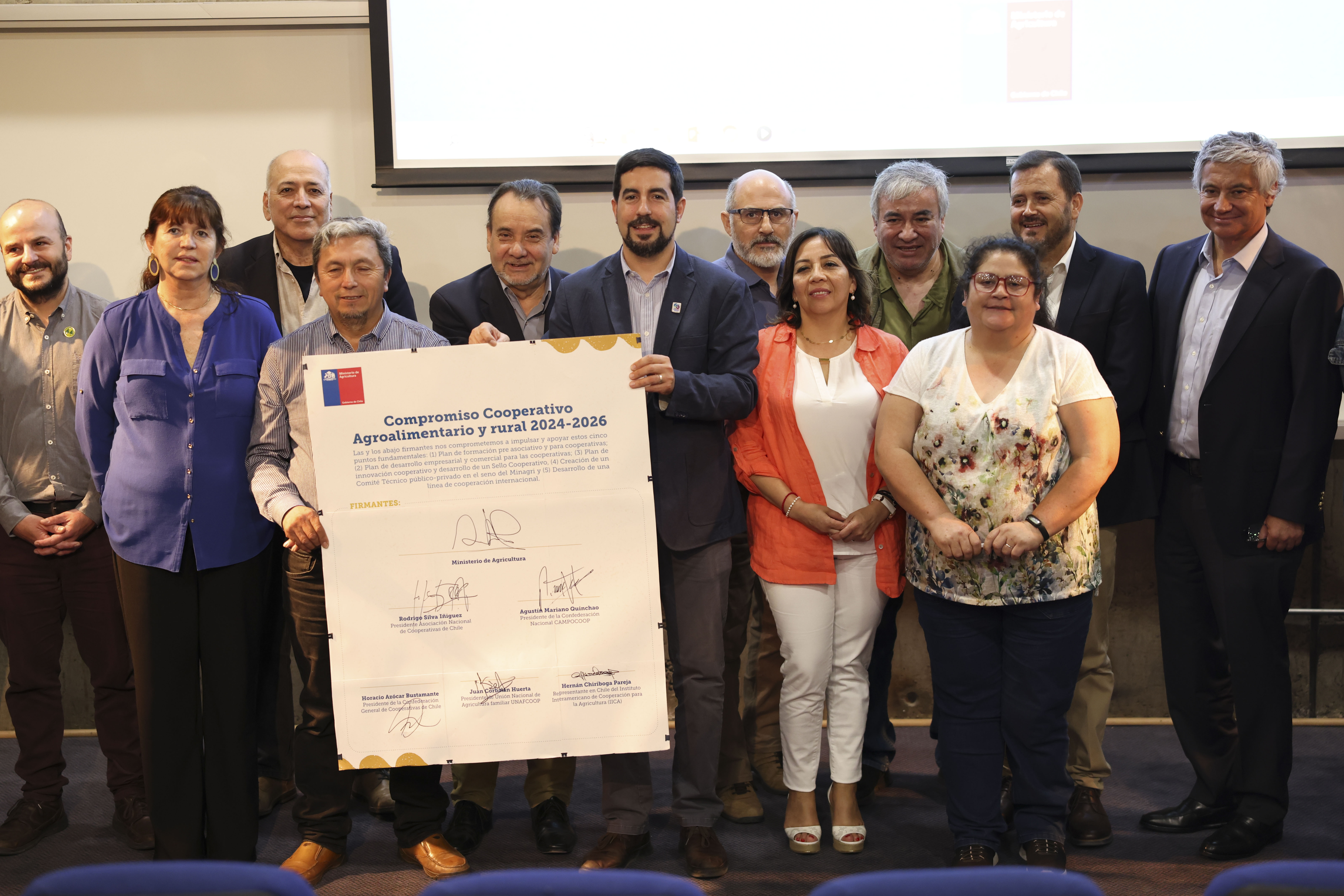 Minagri, con el apoyo técnico de Odepa, realizaron el lanzamiento del “Plan estratégico nacional para el fortalecimiento cooperativo agroalimentario y rural 2024 – 2026: Juntos apoyamos al cooperativismo para el mundo rural” con el apoyo del Banco Interamericano de Desarrollo (BID) y la participación de representantes de cooperativas de la Unión Nacional de Agricultura Familiar (UNAF), Confederación de Cooperativas Campesinas (CAMPOCOOP), Asociación Nacional de Cooperativas de Chile y Confederación Nacional de Cooperativas (CONFECOOP).